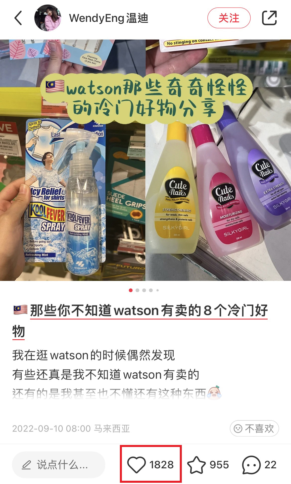 大马美女博主 Wendy 通过小红书推荐8款十分冷门的“奇奇怪怪好物”,在任何一家 Watsons 分行都找得到的,只是你每次经过都没有注意到它们而已~