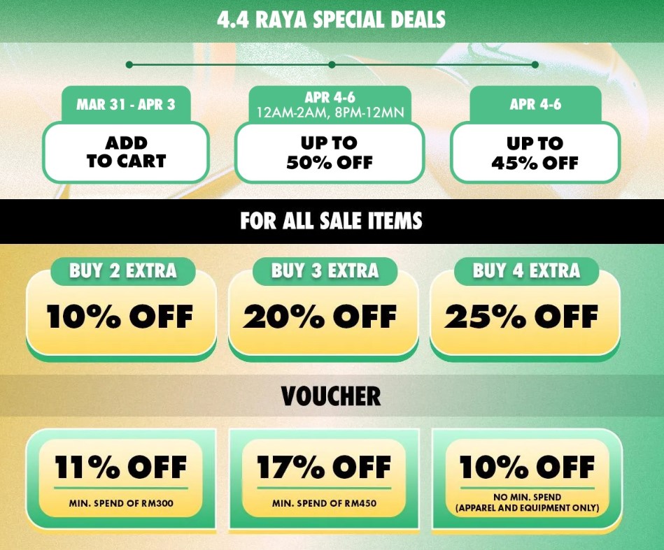 这次 Lazada 4.4购物节,不要错过 Nike 官方网店的3天特价大促销!不仅折扣高达50%,满4件再额外扣25%!Lazada Bonus 满RM90再扣RM9!
