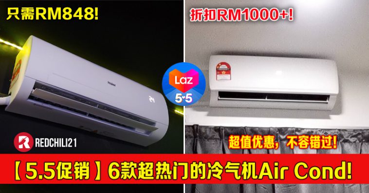 最近天气异常炎热,这时候冷气机必不可少!以下是六款畅销的品牌冷气机,现在Lazada 5.5大促销,最多折扣高达RM1000+!