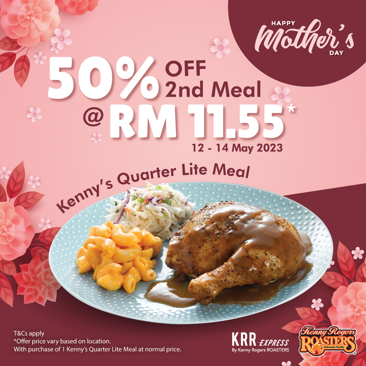 ⑩ Kenny Rogers ROASTERS 第二份餐食享受50%的折扣