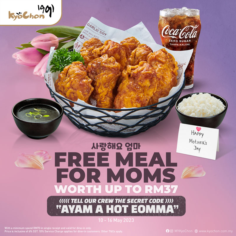 只需对着KyoChon员工说出”Ayam A Hot Eomma”秘密代码,即可享受免费8块鸡翅和鸡腿肉,一碗蒸饭,一碗海带汤和一杯饮料*(总价值高达RM37)。