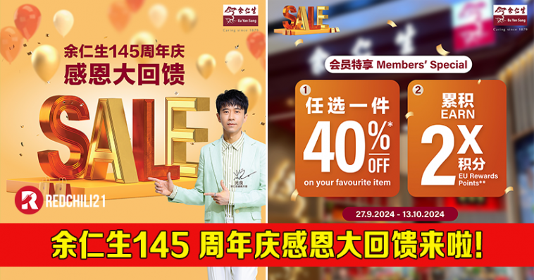 #余仁生周年庆又一次到来,会员们可在这个促销季节享受丰富的会员专属优惠,不要错过哦!