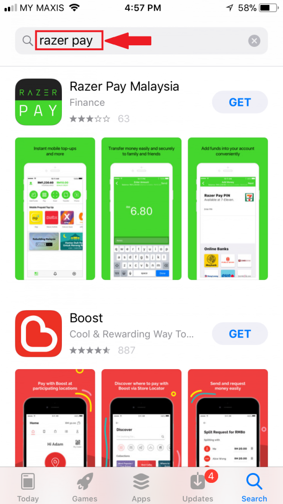 Step 1. 前往 iOS App Store或Google Play 搜寻【Razer Pay Malaysia】然后点击下载。