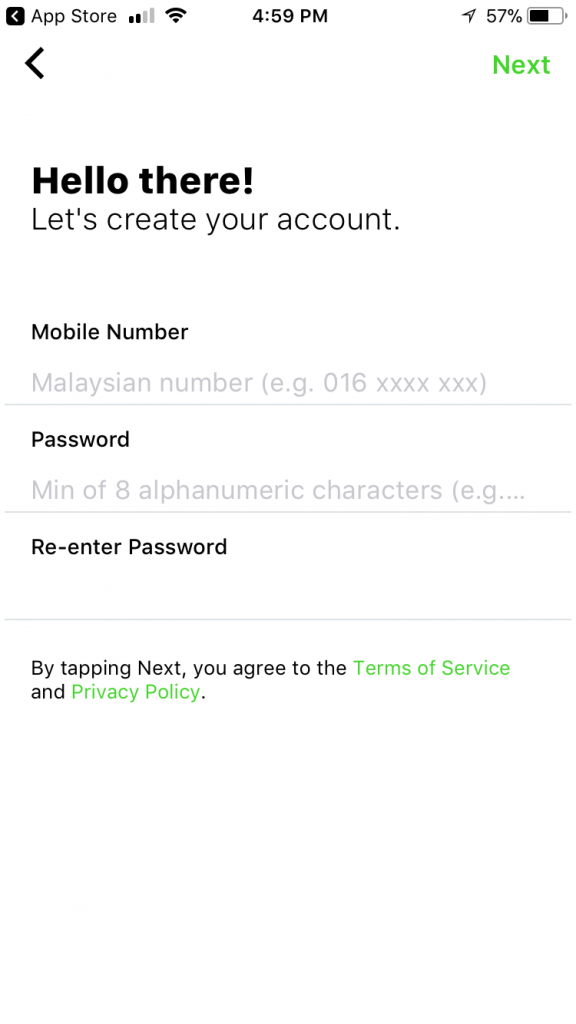 Step 3. 然后输入你的电话号码和创建登陆密码。