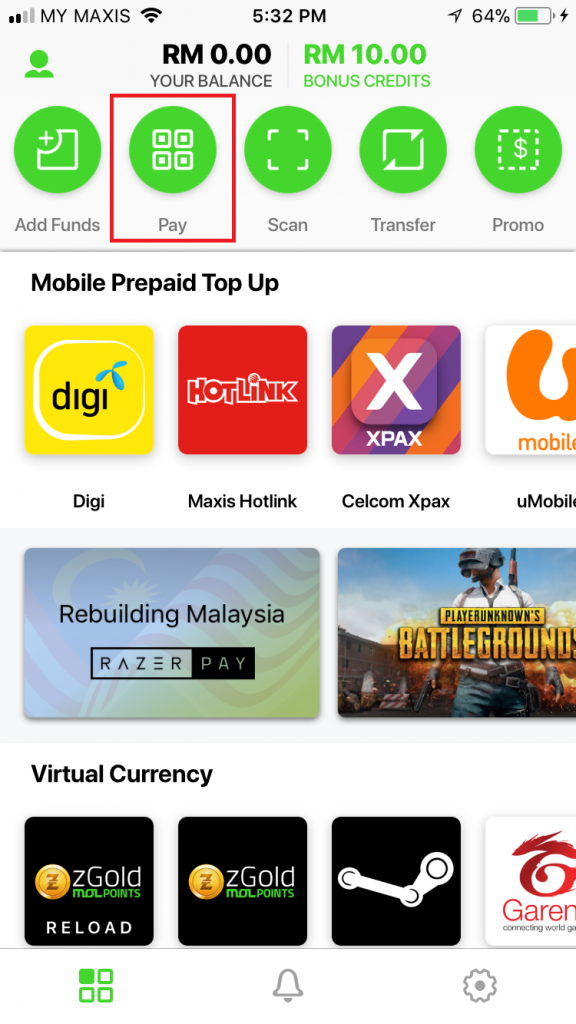 Step 2: 然后到柜台打开Razer Pay 然后点击 “Pay”