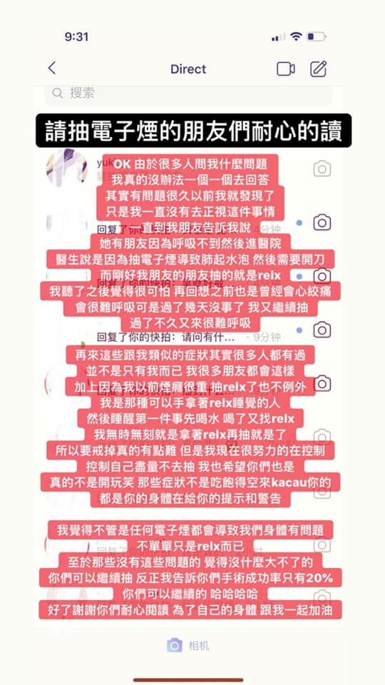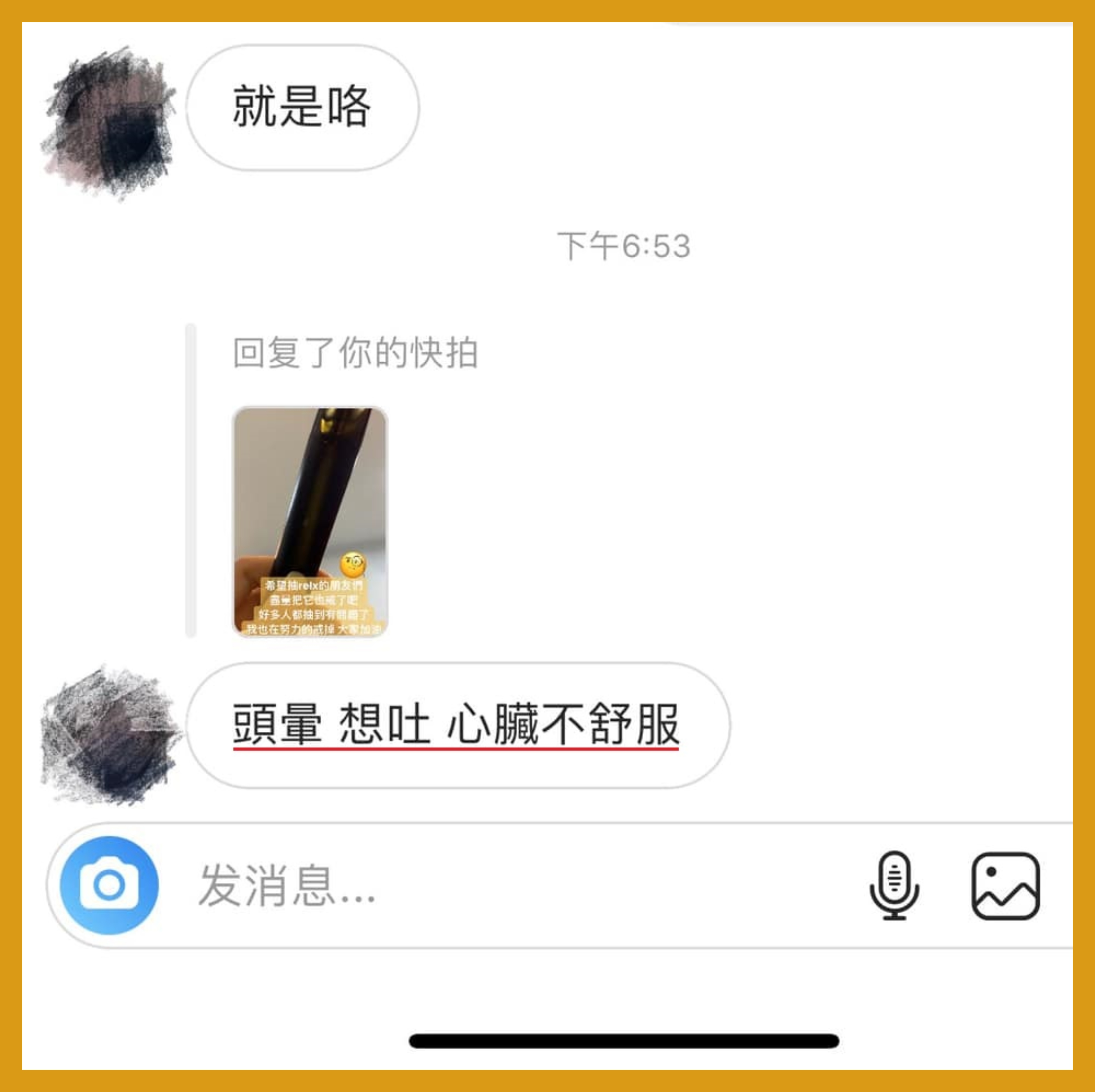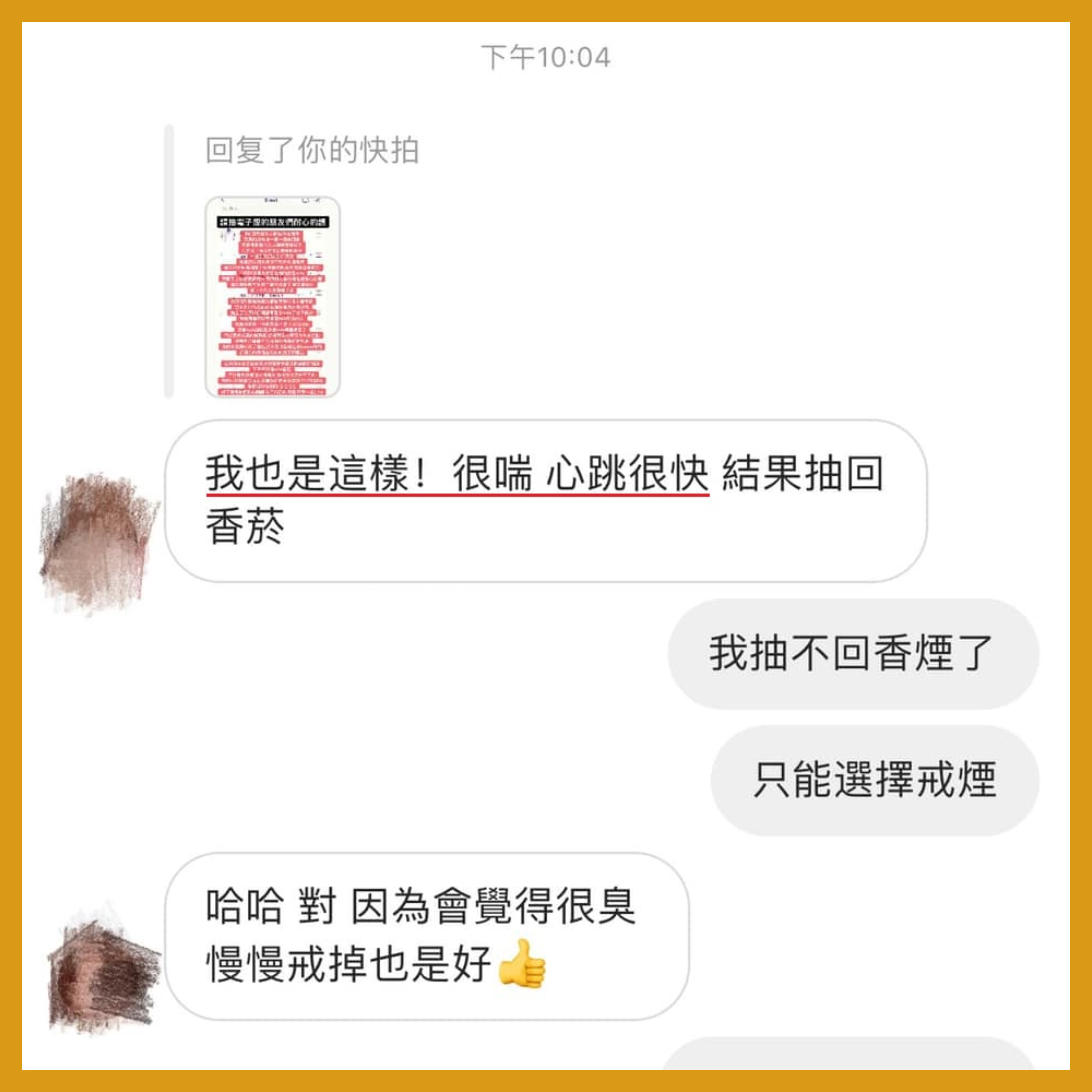 该名女子在 IG Story PO了这则帖文后,许多吸电子烟的朋友都把自己的症状私讯告诉她。