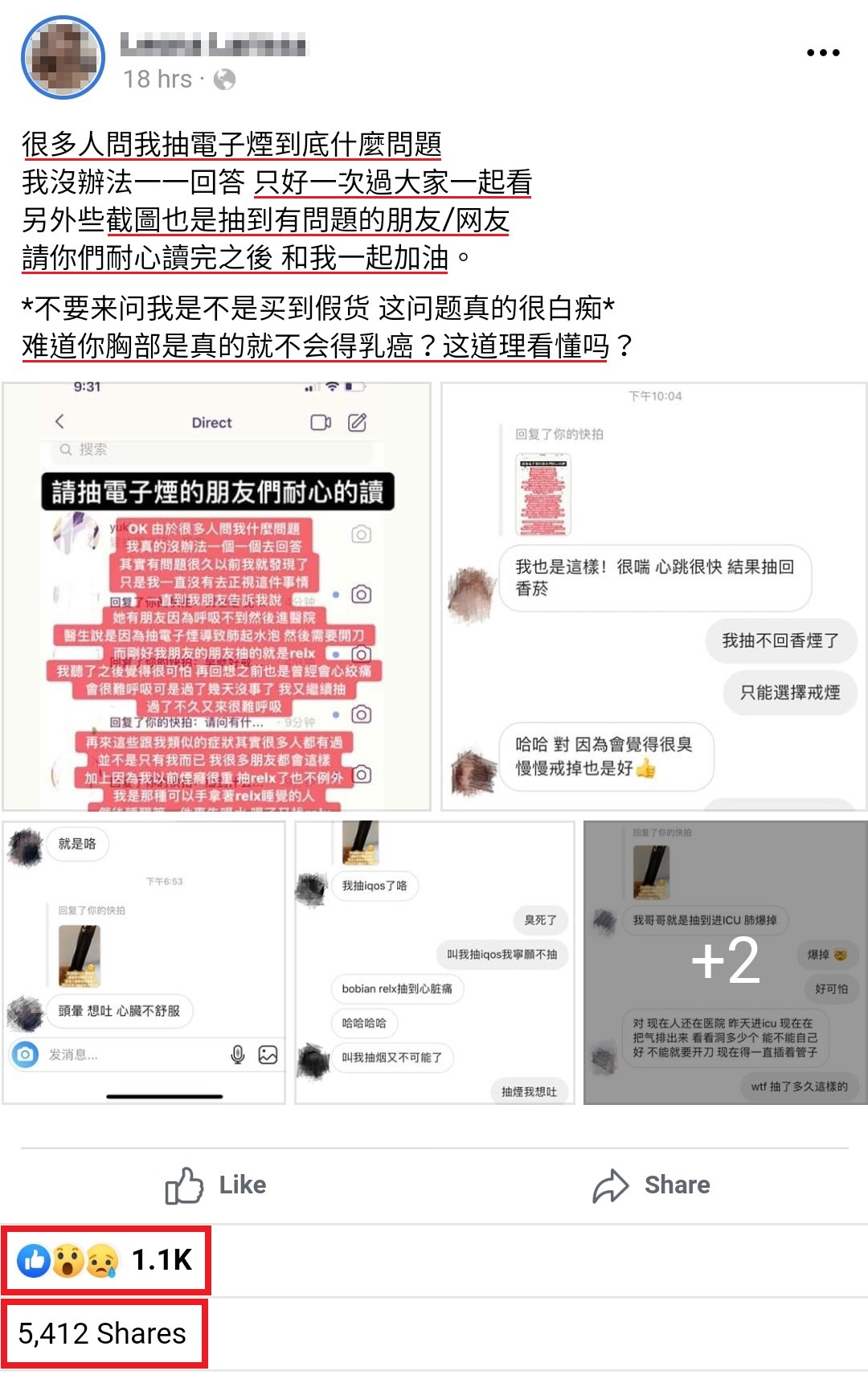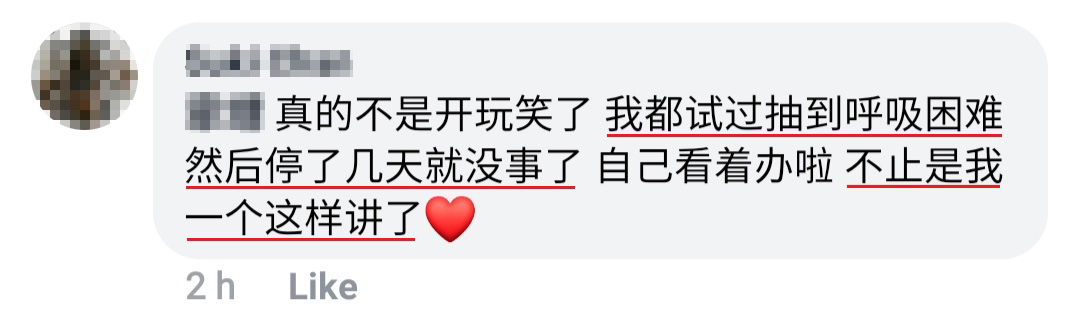 ▼ 一名大马女子PO文写道,自己和朋友们都因为电子烟,导致健康亮红灯!