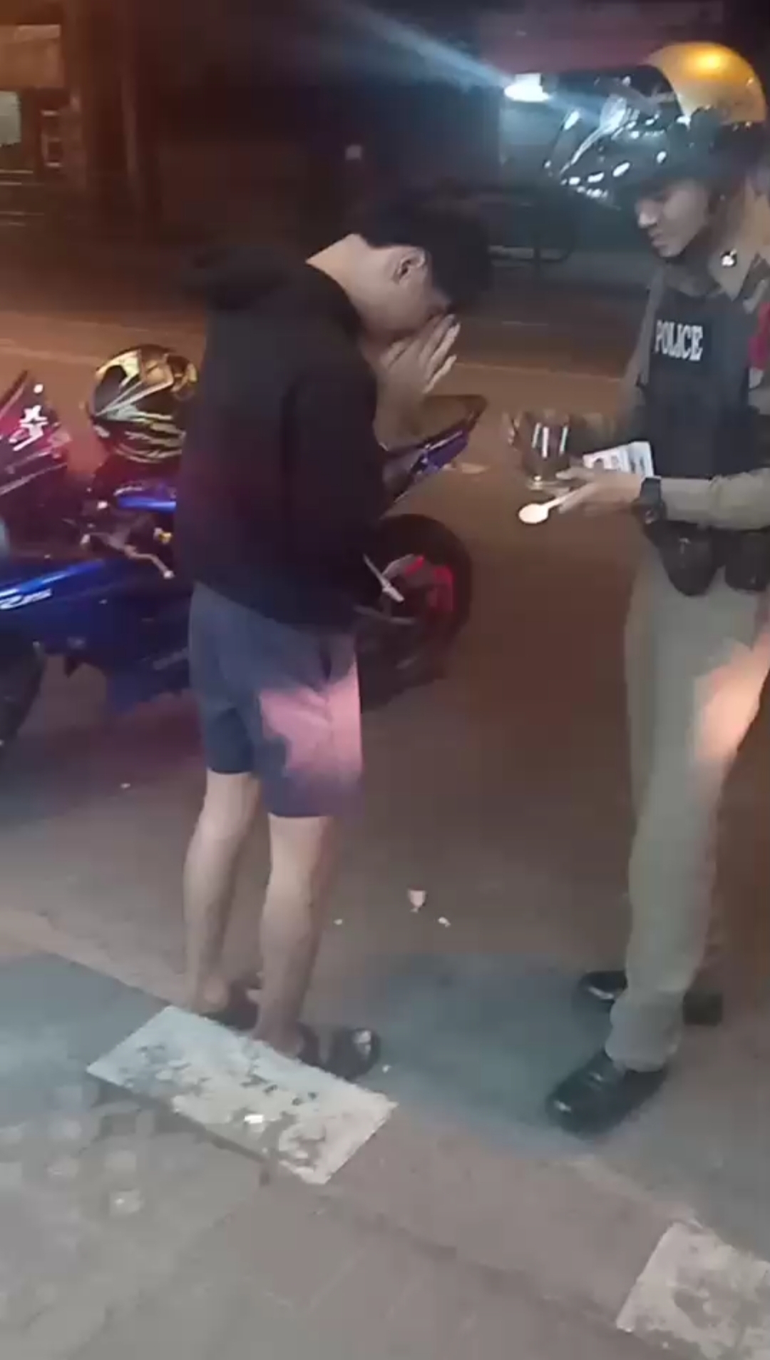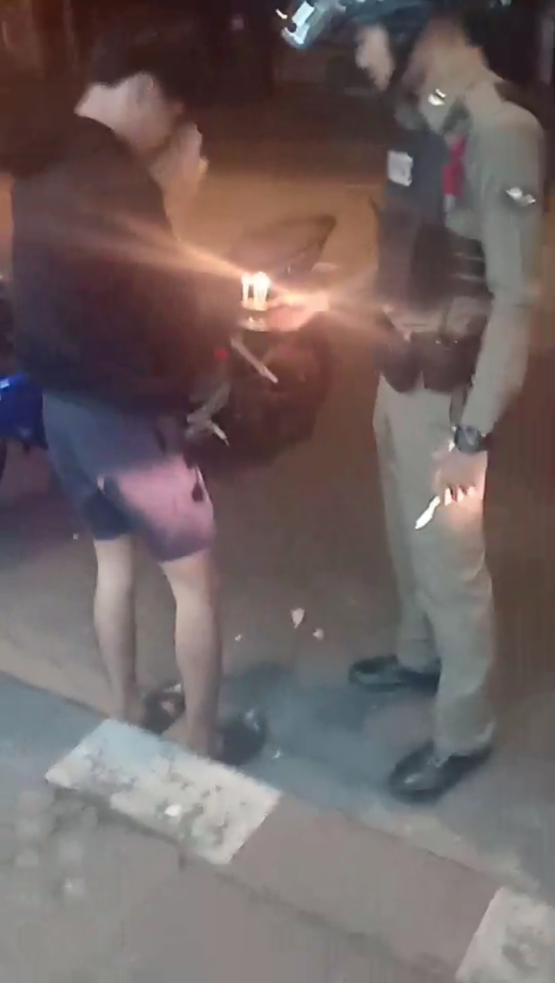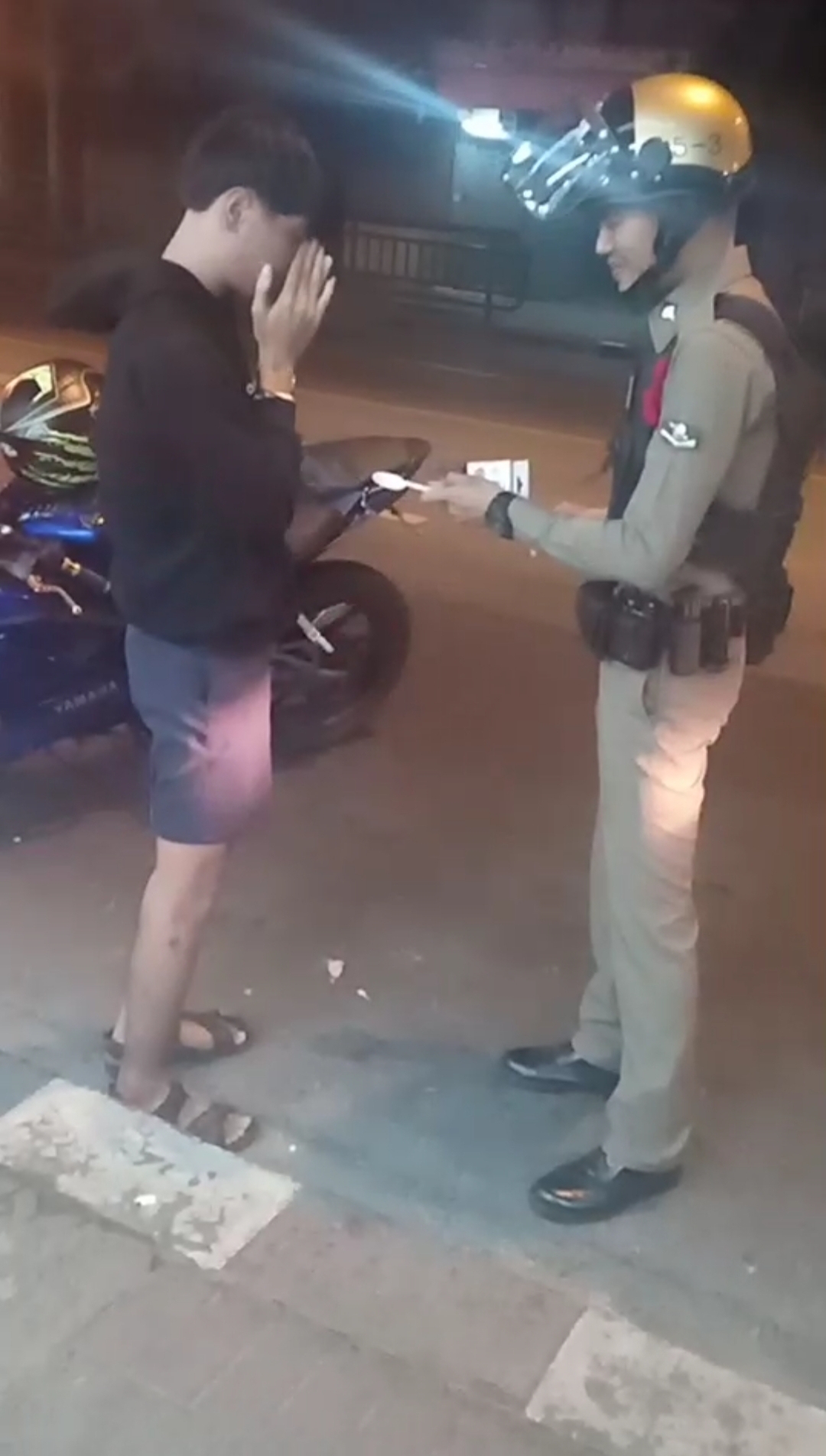 Putthapong 向当地的新闻媒体透露:「我值班的某一天,这辆摩托车在没有戴头盔和驾照的情况下超速行驶,我发现后就决定把他拦下来,准备逮捕他。」