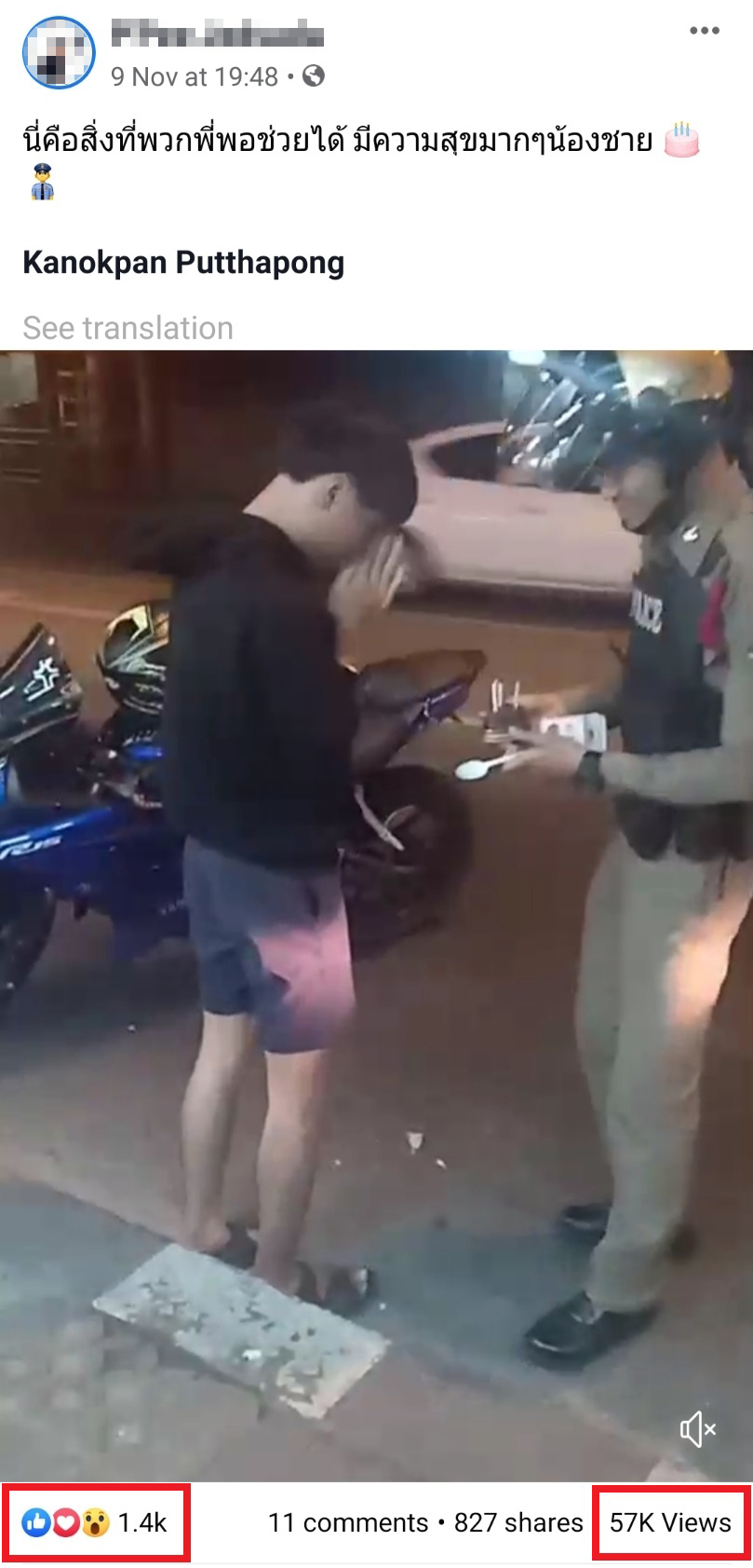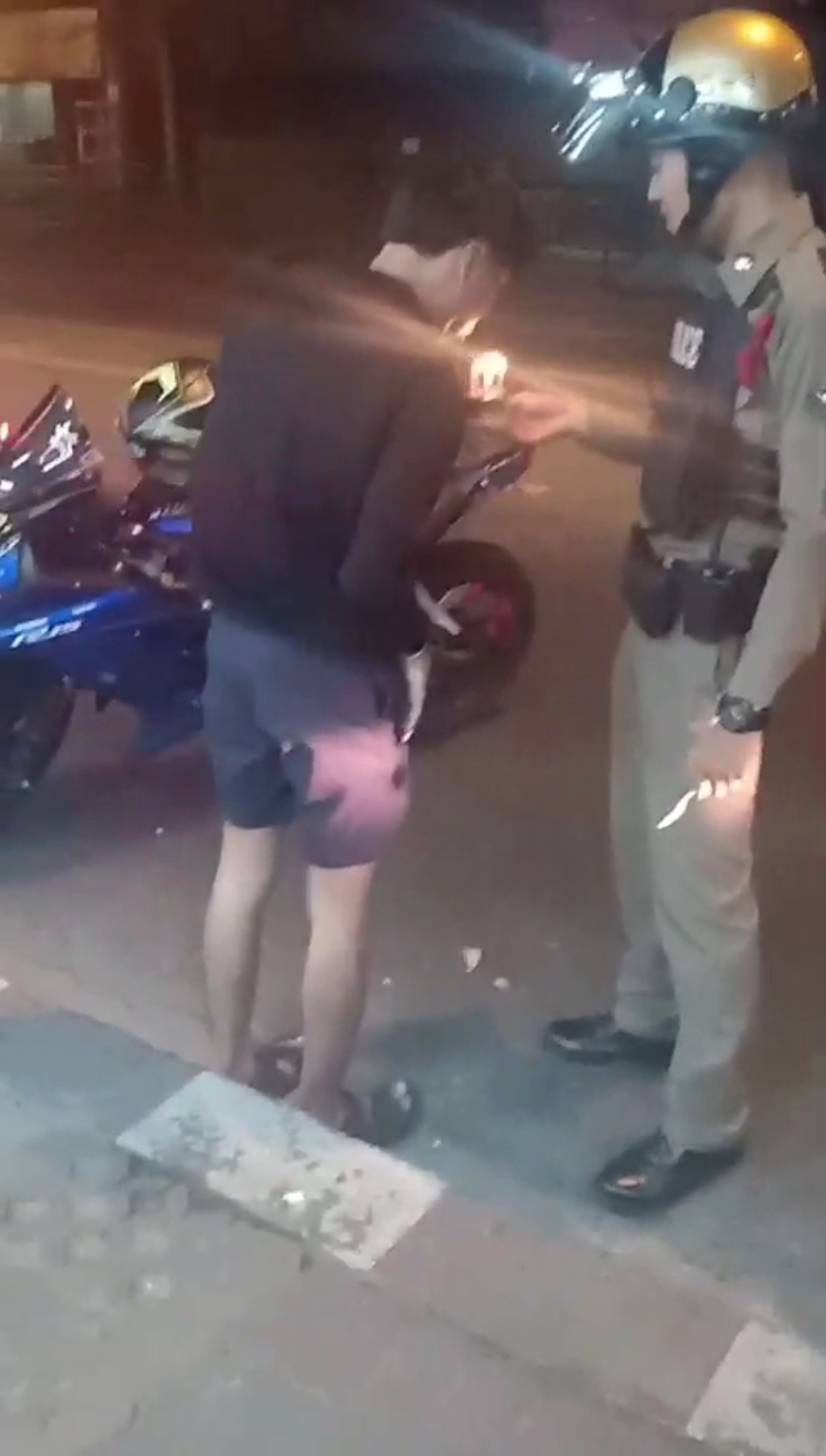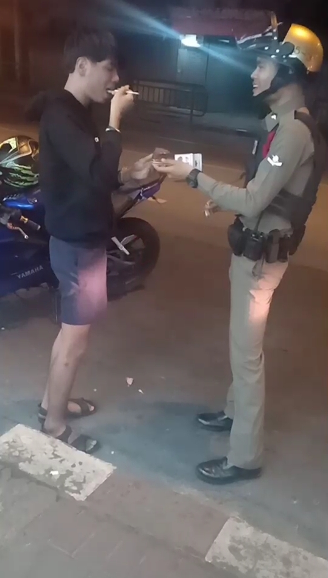 Putthapong 向当地的新闻媒体透露:「我值班的某一天,这辆摩托车在没有戴头盔和驾照的情况下超速行驶,我发现后就决定把他拦下来,准备逮捕他。」