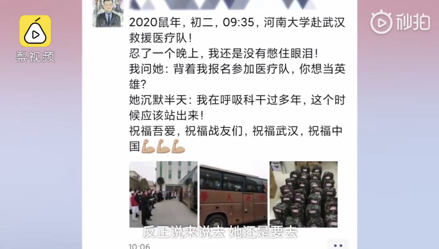 直到丈夫结束工作回老家准备过年时,才接到妻子的微信说她已经报名支援武汉。