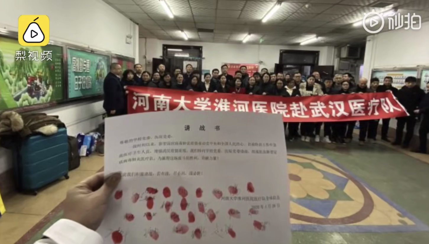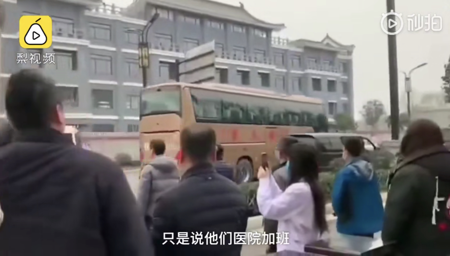 中国河南第一批医疗队在大年初二当天,出发前往武汉帮助支援。参与该团队的其中一名护士,瞒着家人偷偷报名。送行时丈夫非常不舍,对着在巴士上的妻子大喊:「我爱你!」令在场的人都感动落泪!
