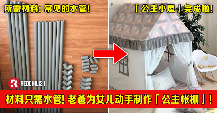 早前,一名来自越南的网友在面子书上传几张照片,爱女心切的爸爸为了女儿,亲自动手制作公主般的「儿童帐篷」,最让人眼前一亮的是:所需用的材料竟然是我们常见的水管!