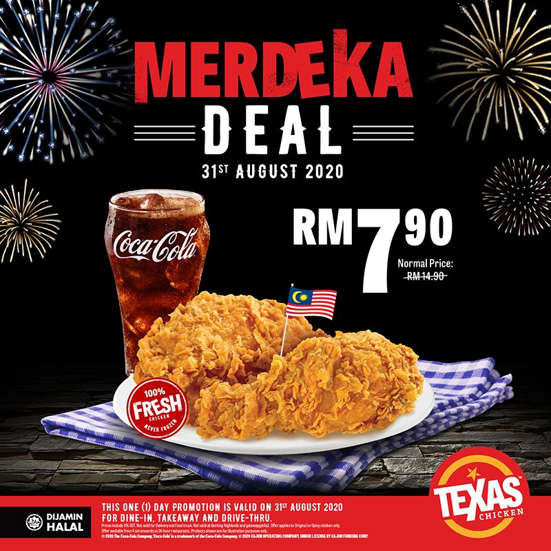 促销活动:Texas Chicken —— 国庆日优惠!炸鸡套餐只需RM7.90!