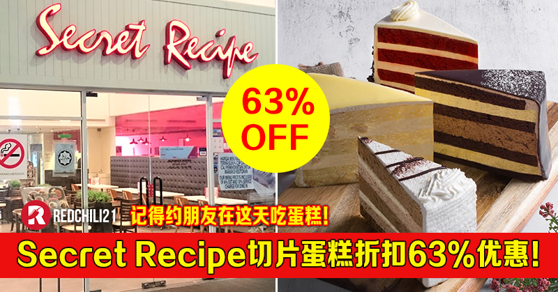 促销活动:Secret Recipe 切片蛋糕国庆特惠(第3片蛋糕63% 折扣)