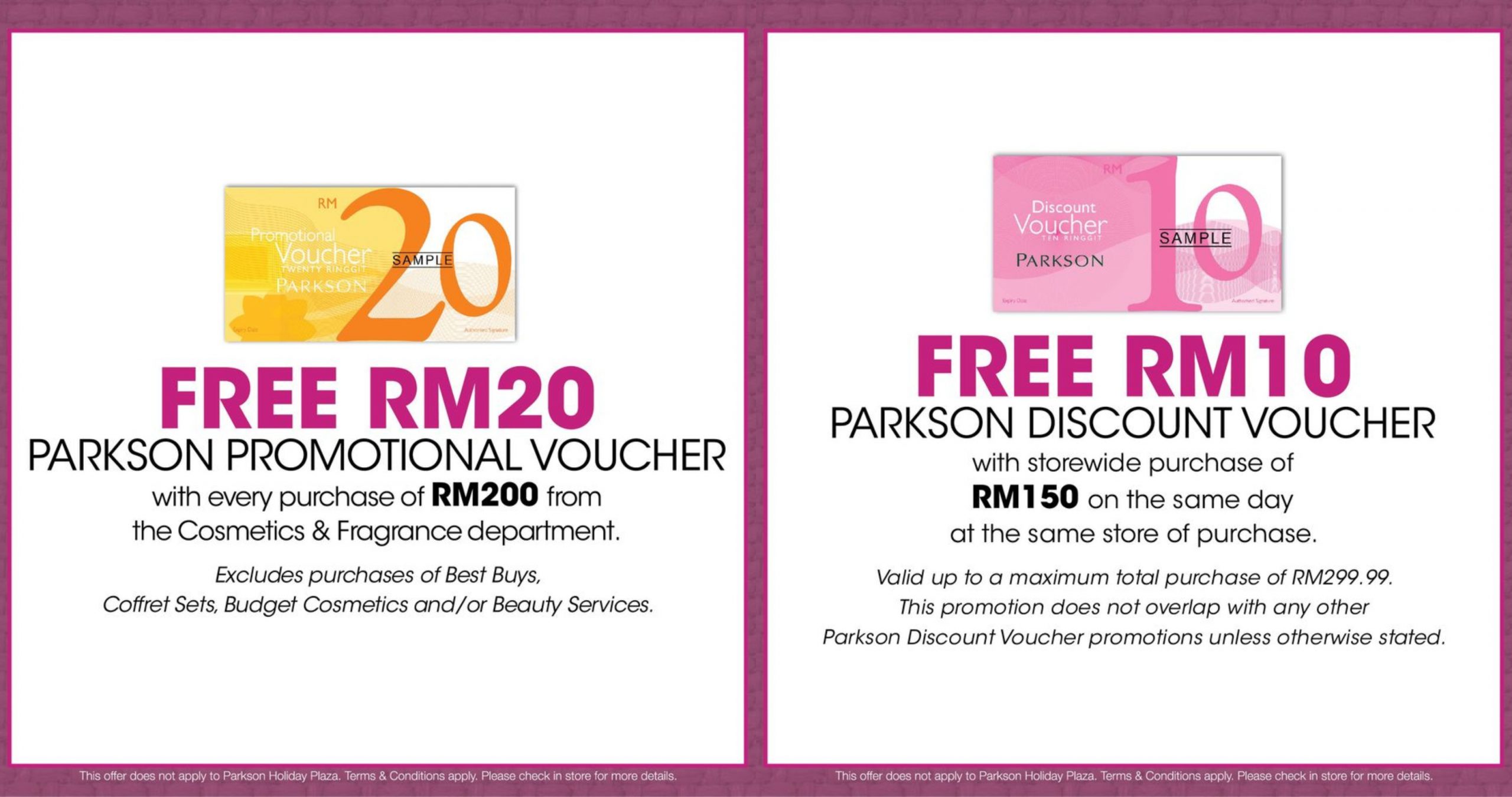 促销地点:所有 Parkson 分行(除了Parkson Holiday Plaza)