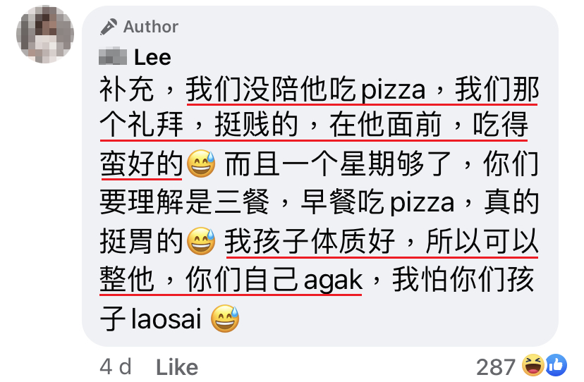 那天起,他爸下令:一日三餐,不能吃别的,他只能吃pizza,吃足一个星期。