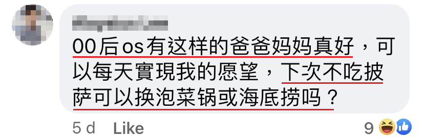 上几个星期,他把饭倒去垃圾桶被抓包。他爸就问他:「你不喜欢吃饭,那你喜欢吃什么?」他说Pizza。