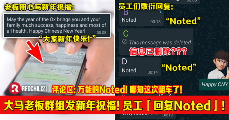 大马老板群组发新年祝福!员工们敷衍「回复Noted」!评论区:万能的Noted!哪知这次翻车了!