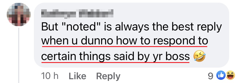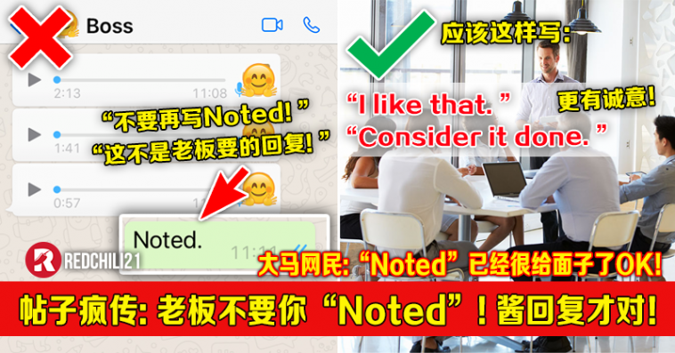 ▼「当你不知道该如何回复老板的时候,“Noted”就是最好的!」