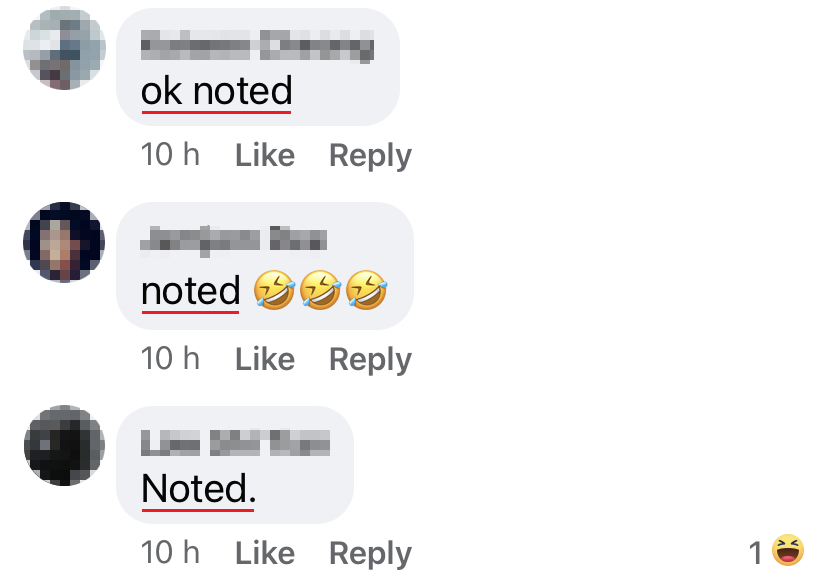 ▼ 网友们还是继续“Noted”!哈哈哈!