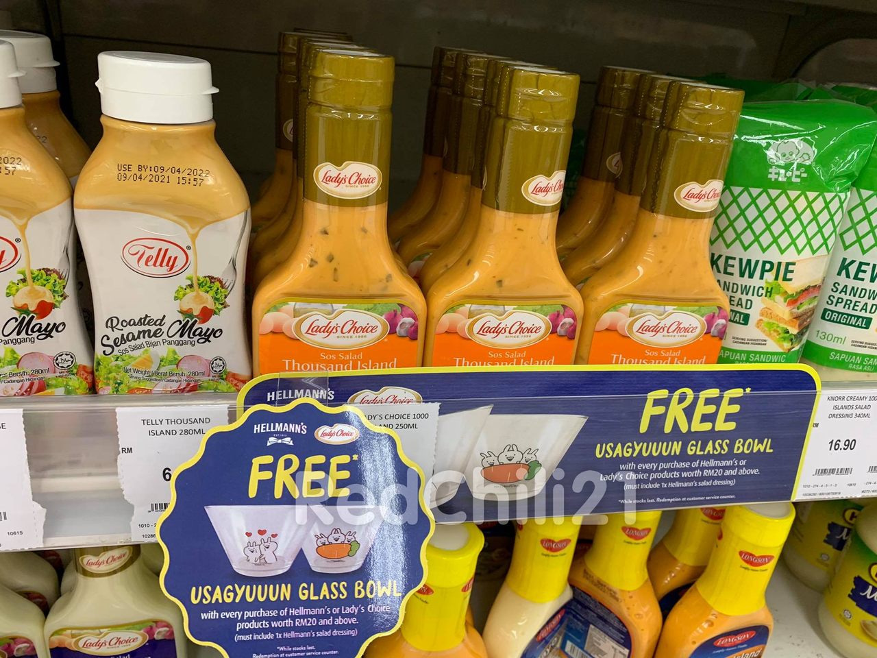 此外,小编还发现到Aeon 和Giant 也有送出这款小突兔玻璃碗!但只需购买RM20 或以上Hellmann’s 或Lady Choice 产品(必须包括Hellmanns Salad Dressing)就能免费获得此赠品了!