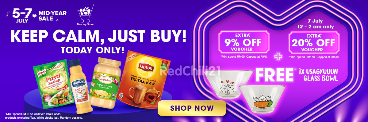 想要收集这款小突兔玻璃碗的朋友,可在Lazada Grocery Store 官网购买RM30 或以上Unilever Total Food 食品!还可额外获得9%+20%折扣!