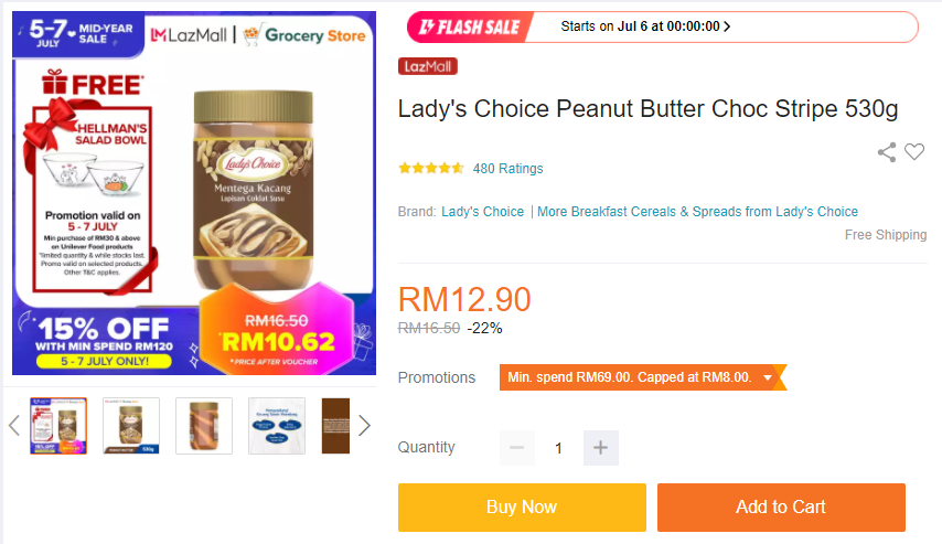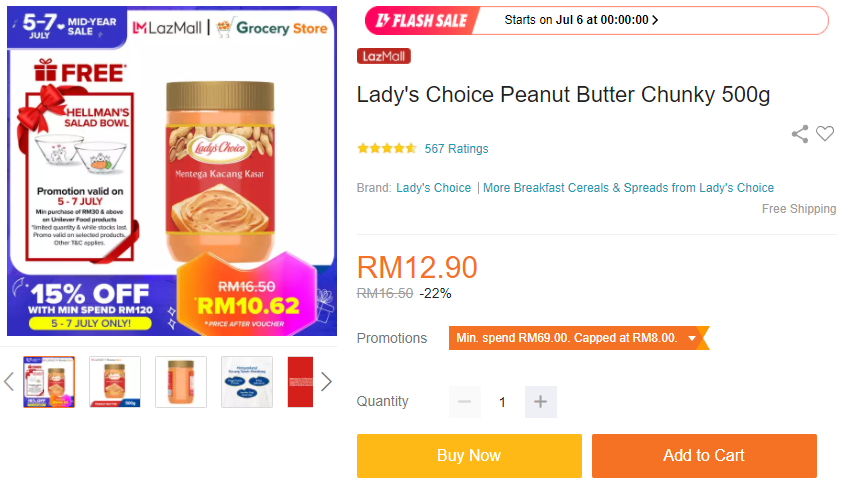 促销地点:Lazada Grocery Store官网【点击这里】;Aeon 或Giant 超市