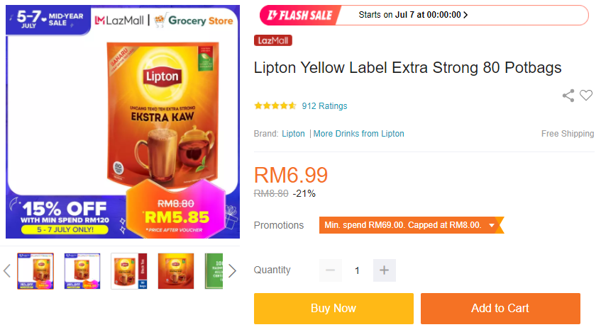 ▼ Lipton Yellow Label Extra Strong 80 Potbags – RM6.99;购买【点击这里】