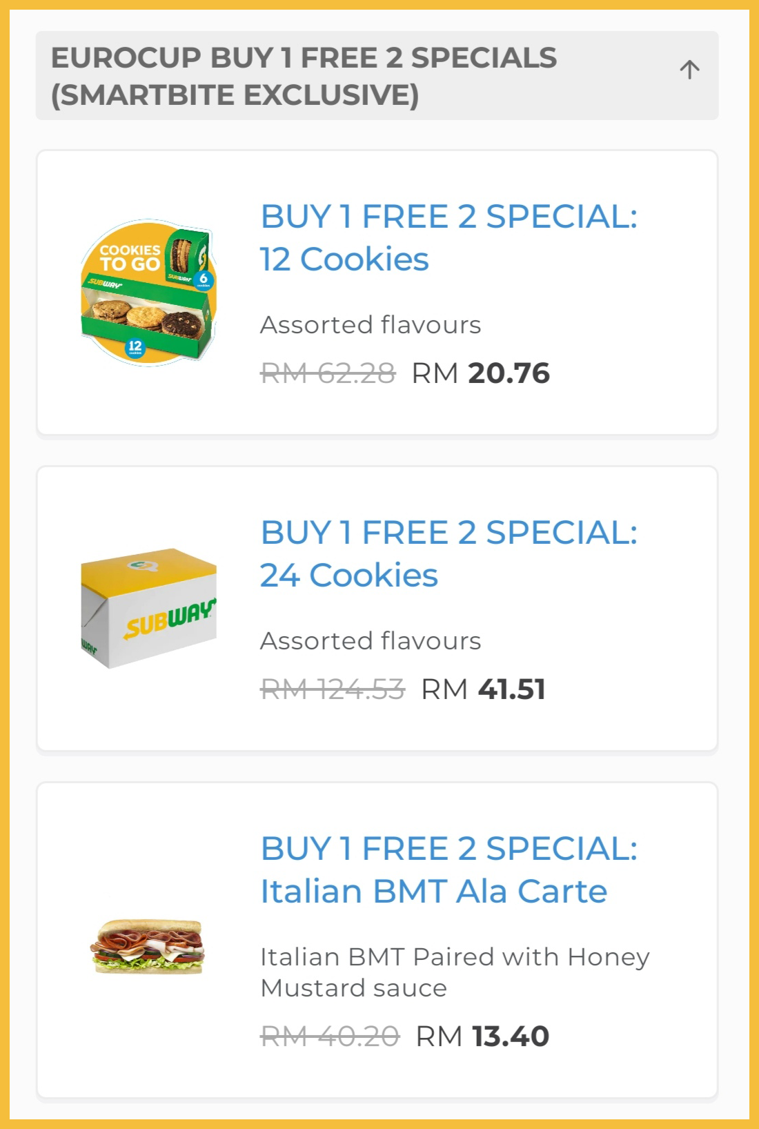 - 三明治买1送2:Italian BMT Ala Carte – RM13.40(平均一份RM4.47)