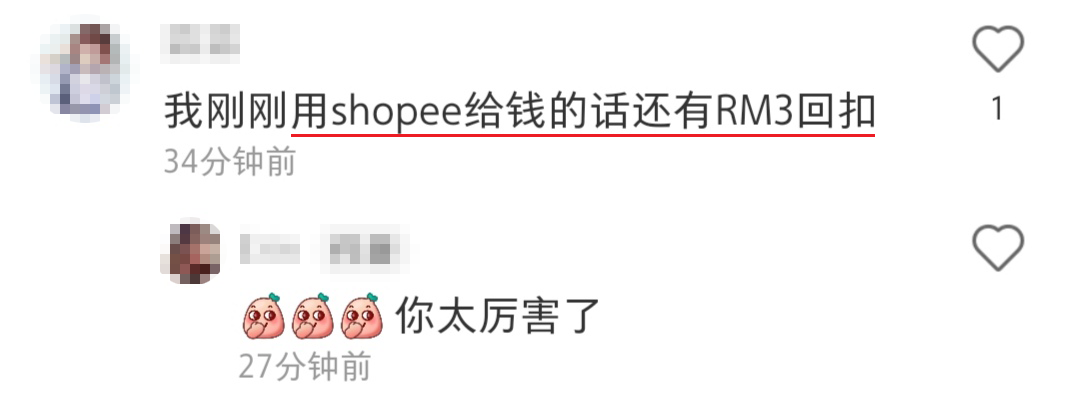 ▼ 另一位网友分享:使用ShopeePay 付款可额外获RM3 回扣!