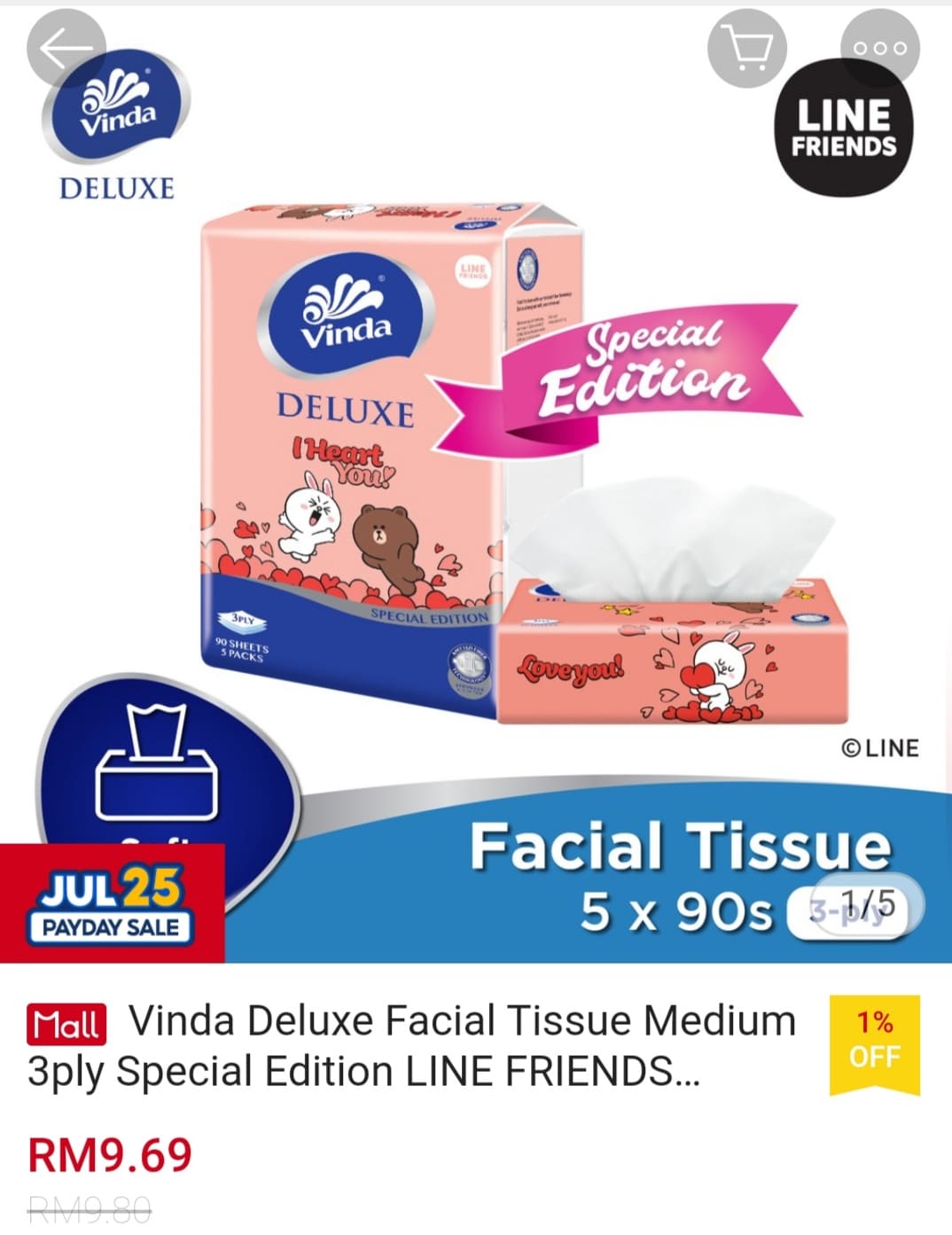 i) Vinda Deluxe Facial Tissue Medium 3ply Special Edition LINE FRIENDS (5x90s);购买【点击这里】