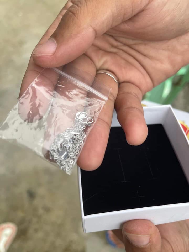 包裹外面写着:内容物价格是超过 USD1000(约 RM4,230)的钻石首饰。abang 拆开来看的结果:是一条大概是我们这边小朋友去转鸡蛋也可以拿到的一条超 balia 的链!