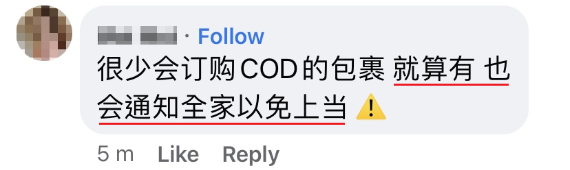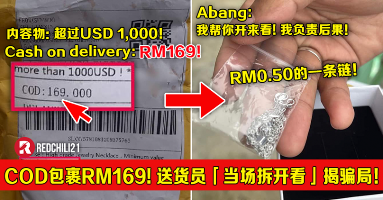 大马网友近日在脸书发文分享真人真事,突然送来一个货到付款(cash on delivery)的包裹,事主被通知需要支付RM169,所幸送货的 abang 察觉不对,立刻“出手相救”阻止悲剧发生。