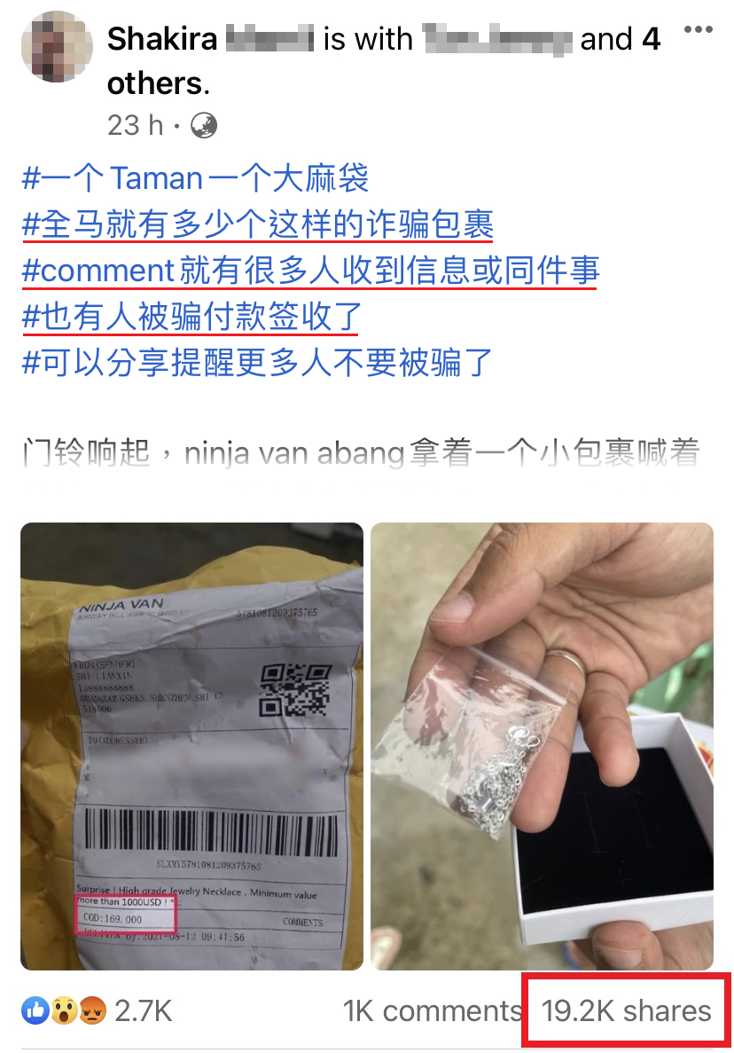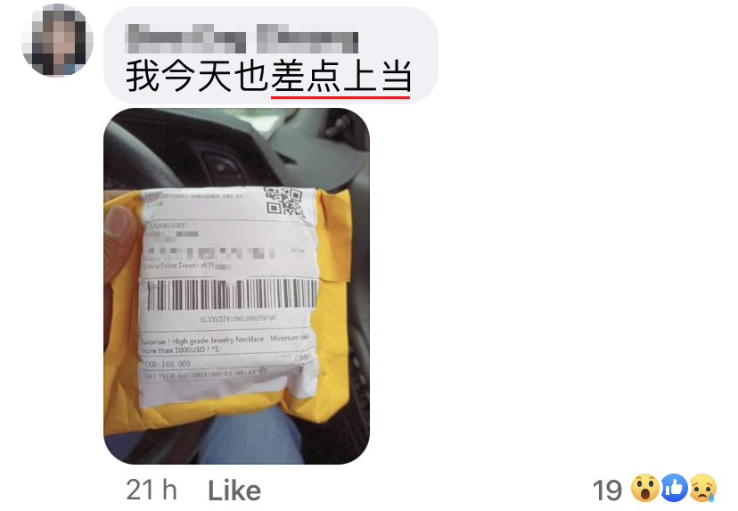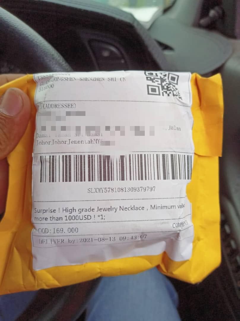 大马女子收到诈骗包裹!常网购的签收时要注意!网友:我那天也是被骗了RM175!