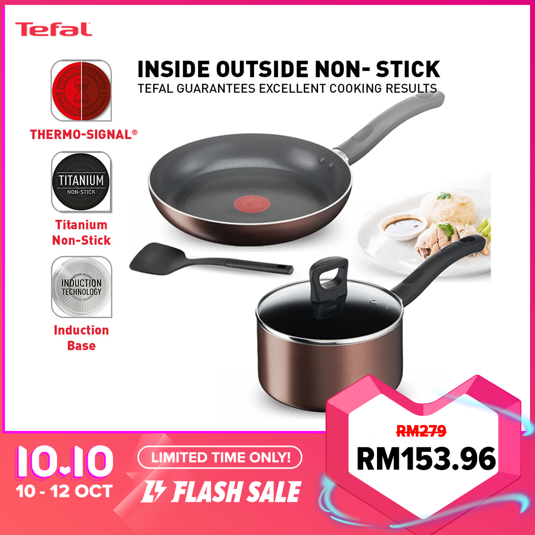 ▼ [Online Exclusive Bundle] Tefal Day by Day 4 Pcs set (G143S4) – Frypan 24cm + Saucepan 18cm + lid + Small Spatula – RM279 RM153.96