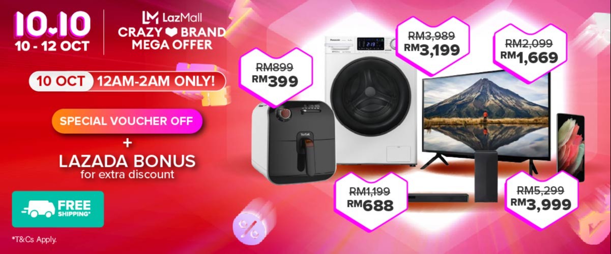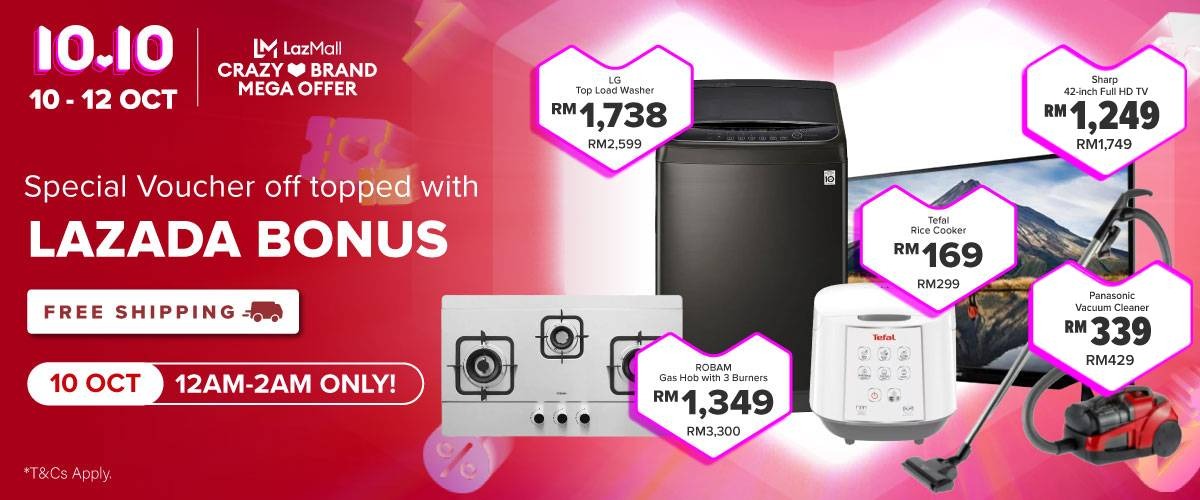 大马10大电器品牌都在 Lazada 官方网店都各自推出了10.10大促销,折扣高达76%!尤其是9月9日当天凌晨将有很多值得你去抢购的电器!以下只是一部分促销中的商品哦!