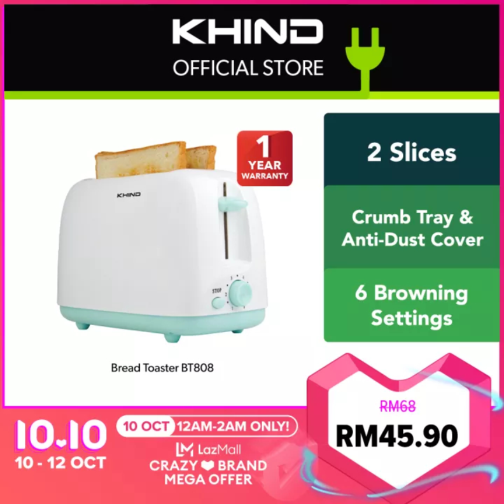 ▼ Khind 2 Slices Bread Toaster with Anti-Dust Cover BT808 – RM68 RM45.90