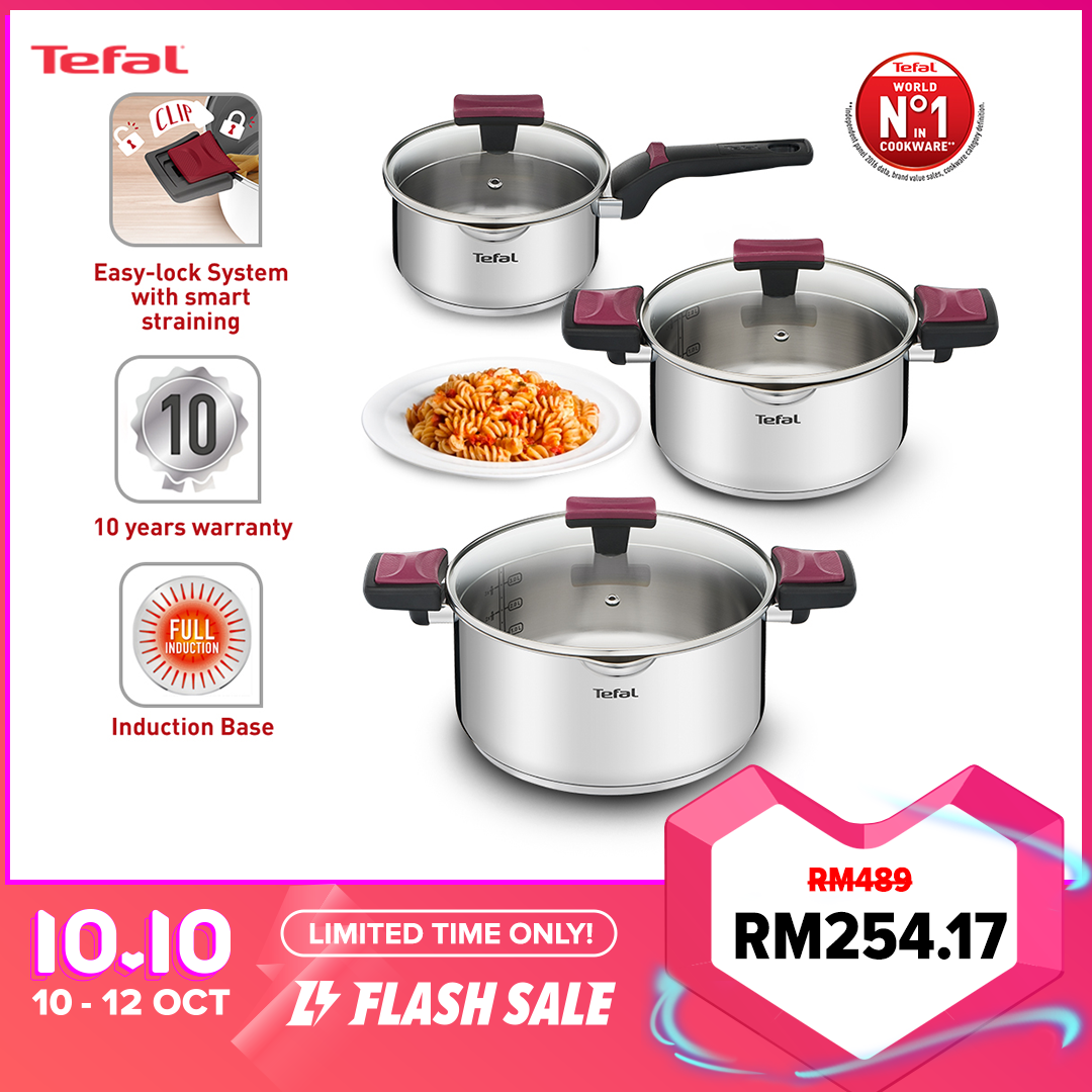 ▼ Tefal Cook & Clip 6 pcs Set (G723S674) (Saucepan 16cm with lid+Stewpot 20cm & 24cm with lids) – RM489 RM254.17