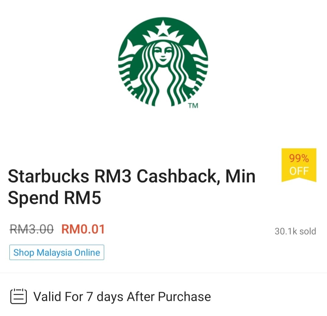 ▼ 别忘了,通过Shopee App 购买Starbucks 礼券,享有RM3 现金回扣(最低消费RM5)!