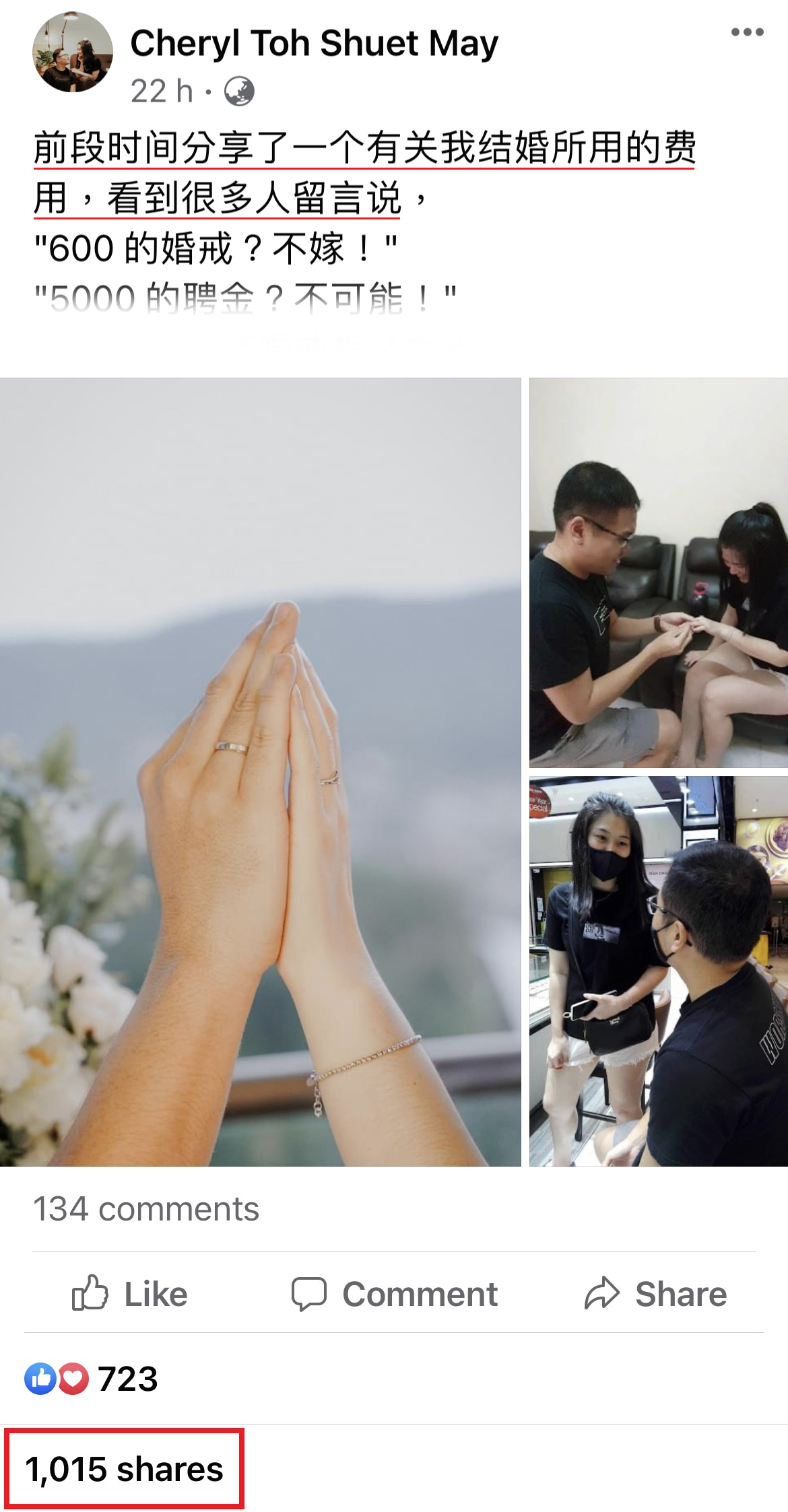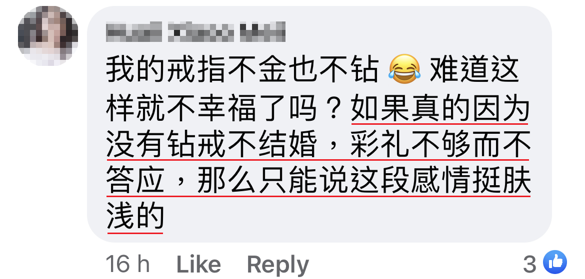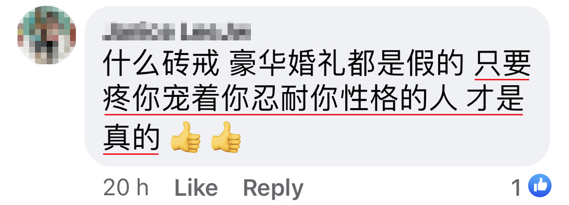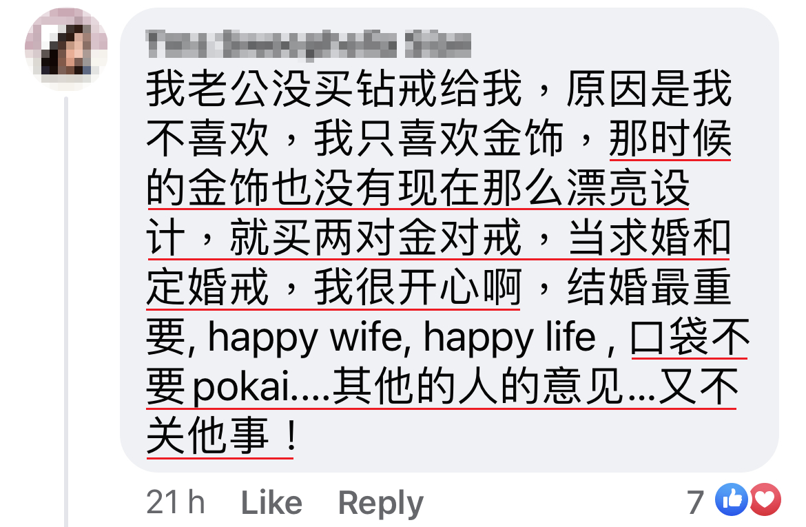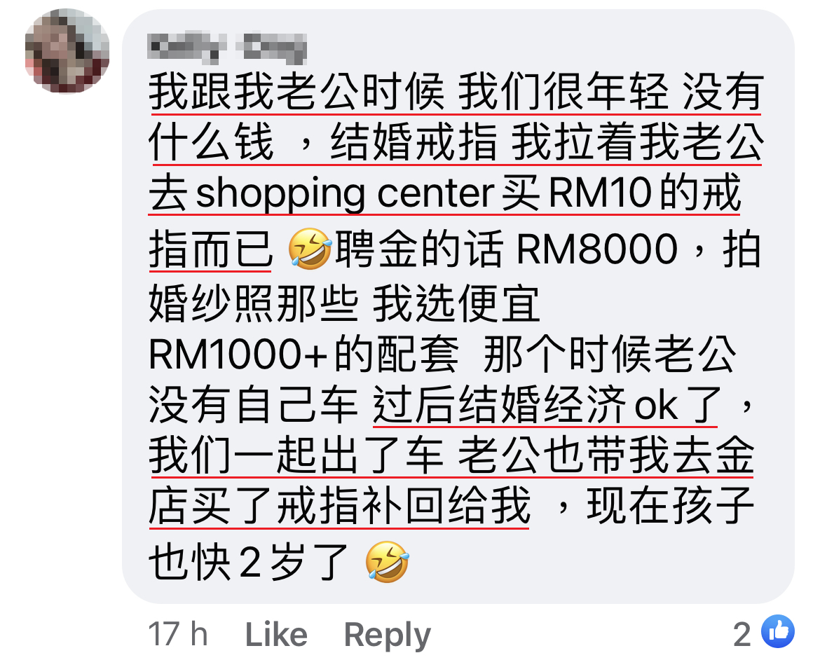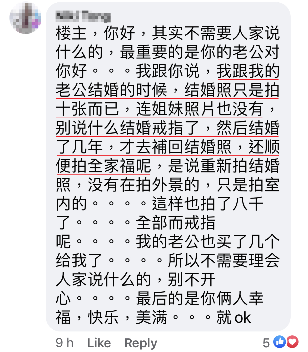 外人看起来什么都没有,可是我这辈子都会记得,这个男人在最艰难的时刻,给了我他的一切,买了 RM600 的钻石戒指给我!