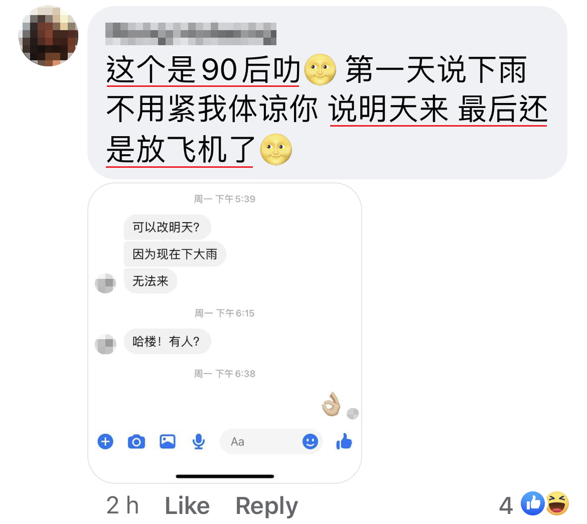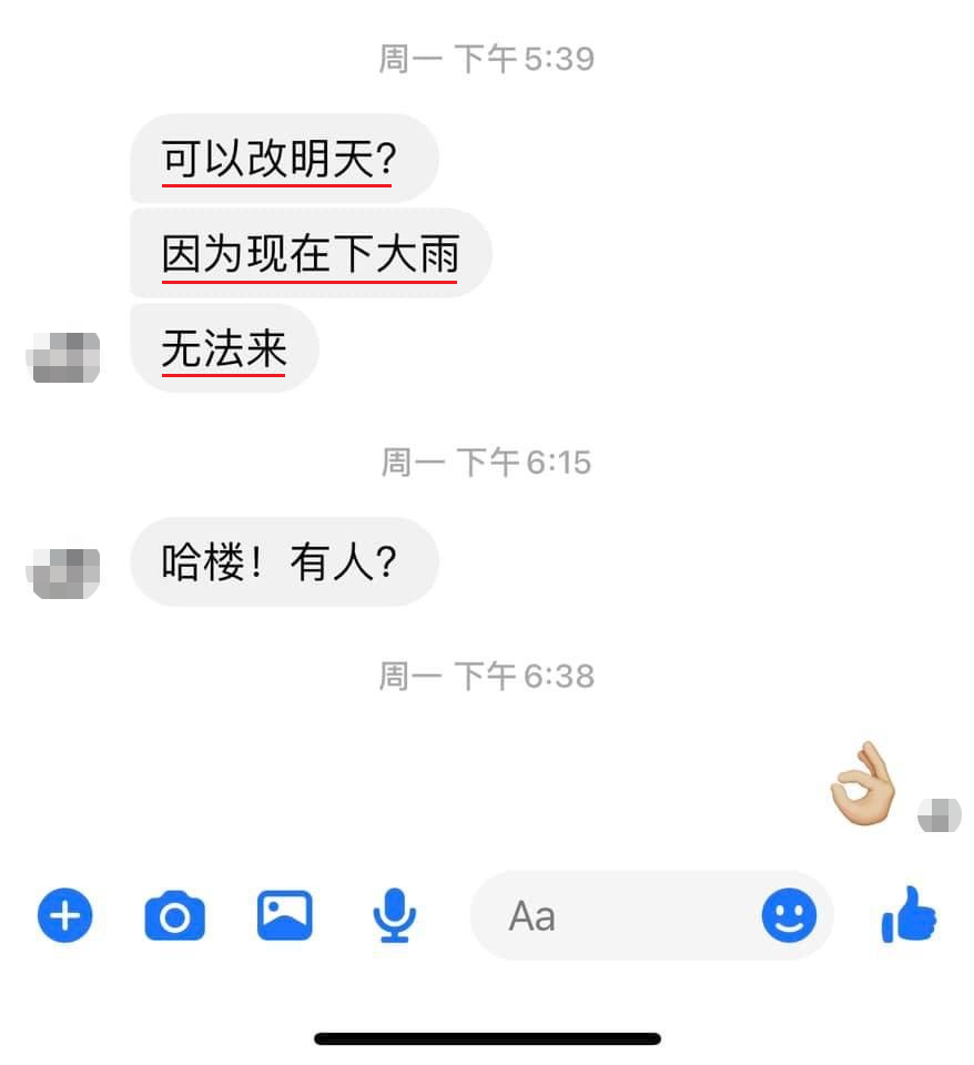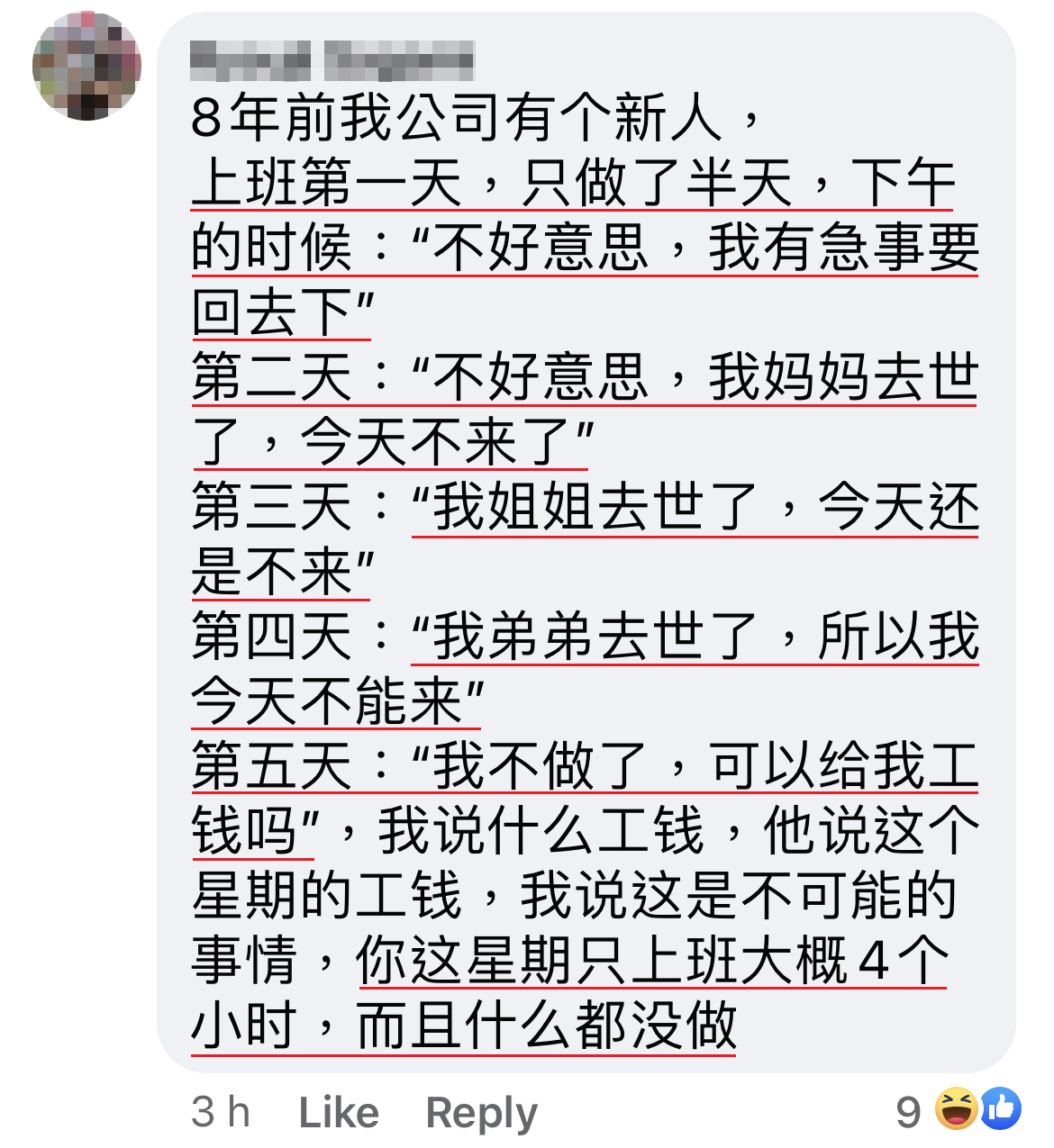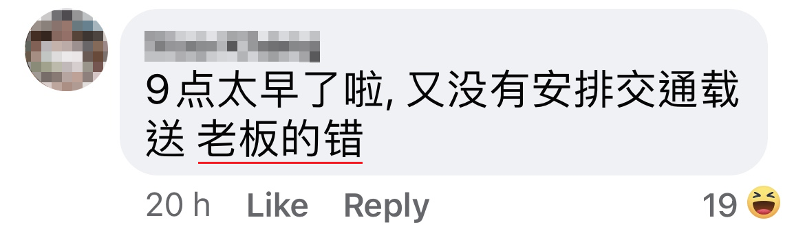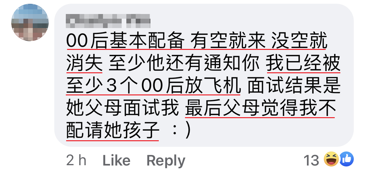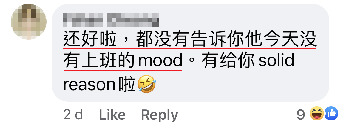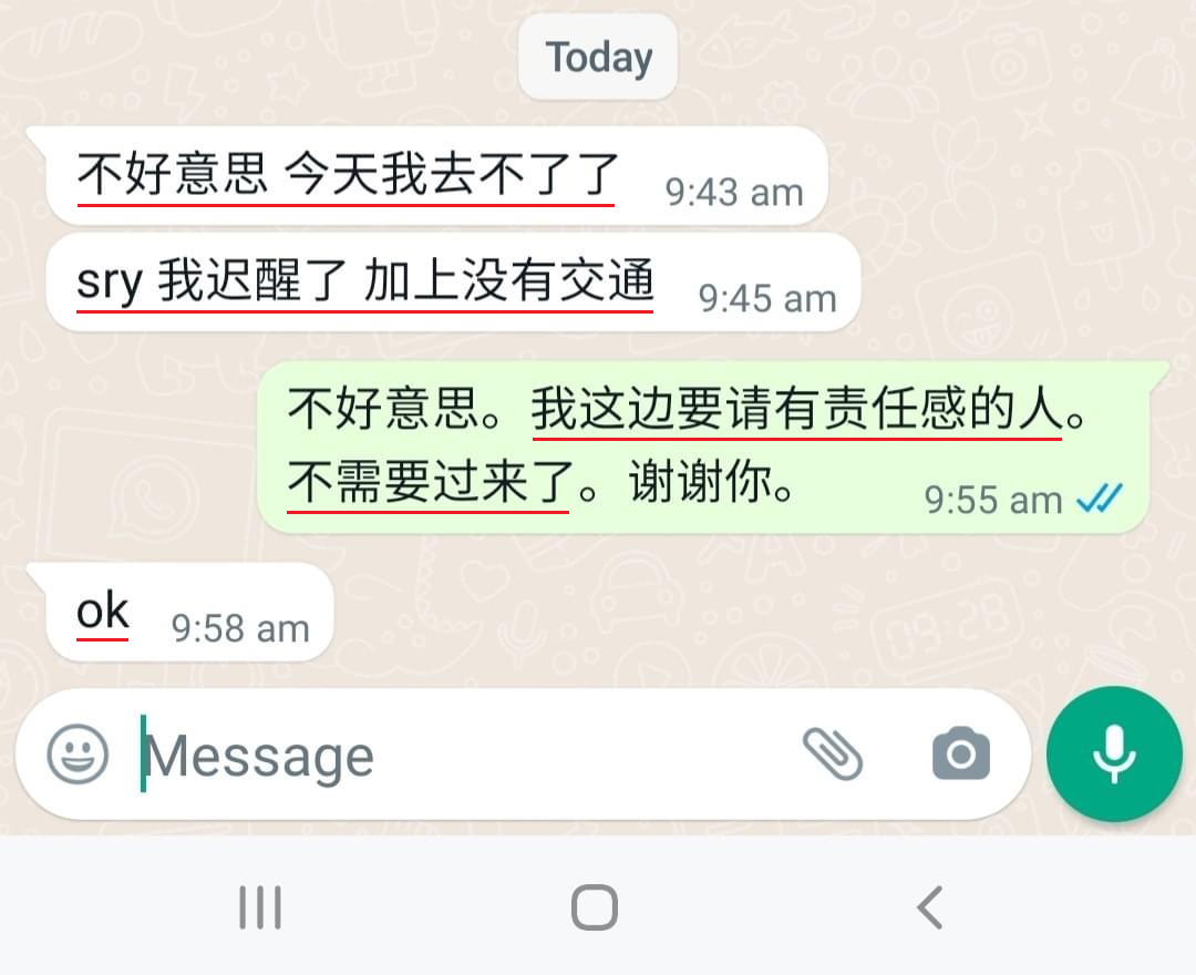 ▼ 00后员工:「不好意思,今天我去不了了。Sorry,我迟醒了,加上没有交通。」