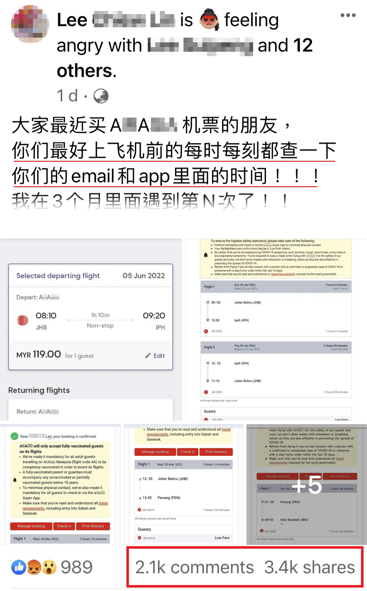 大马一名脸书网友日前PO文宣泄不满,投诉某知名廉价航空公司无数次静悄悄地更改提早航班时间,光是这3个月就已经遇到第N次了!