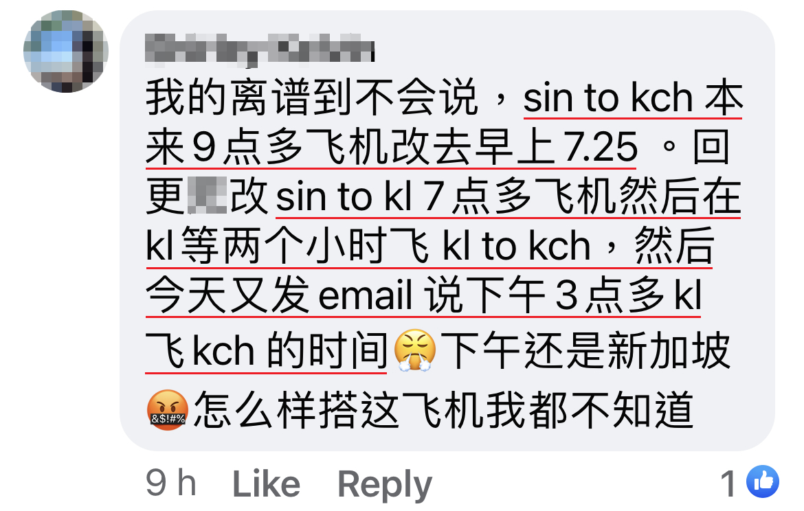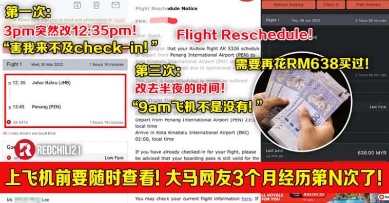 我买了3pm的机票 JB 飞 Penang,突然跟你改成12.30pm的飞机,害我迟到没得 check-in。