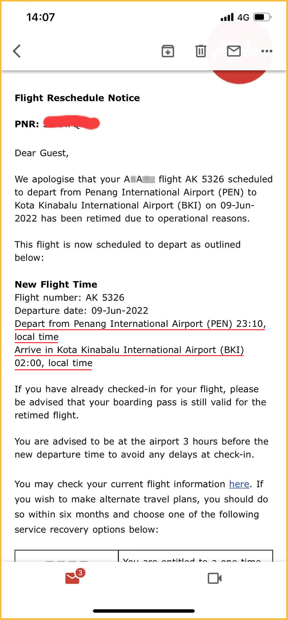 我买了6月4号 JB-IPH 的飞机,原本是早上8am起飞,今天打开 app check 一下,飞机竟然跟我改去9am。