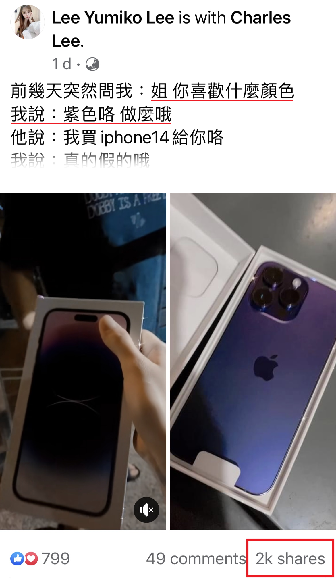 大马美女近日收到弟弟的惊喜礼物,竟然是很多人梦寐以求的 iPhone 14 Pro Max 深紫色!有一种姐弟情深叫做妳不要求但我愿意给,脸书网友们直呼羡慕啊啊啊~