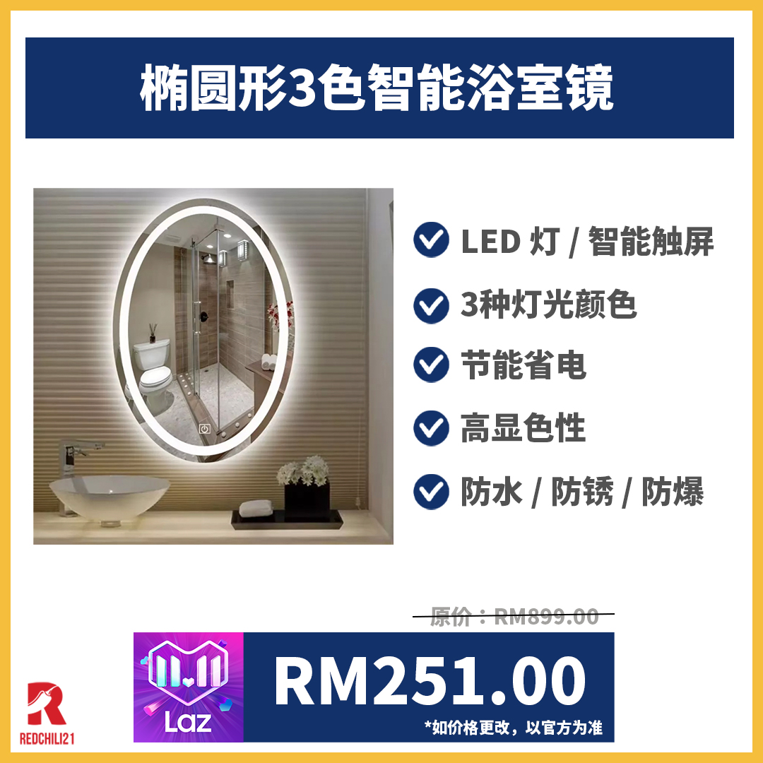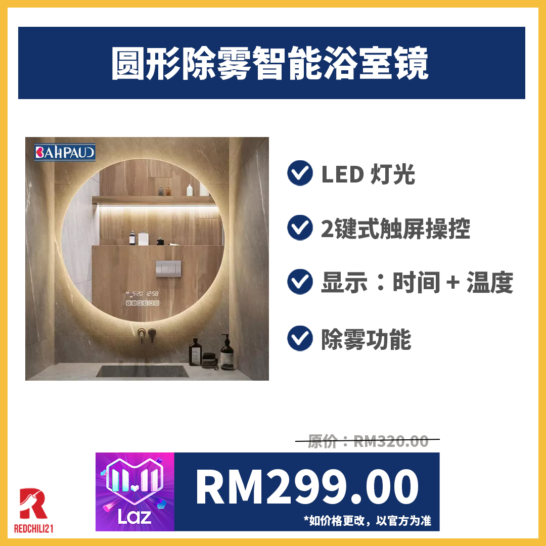 Lazada 8款氛围感极佳的智能浴室镜,多功能又高级好看!趁着11.11大促销还有 Lazada Bonus 折扣,买起来吧!