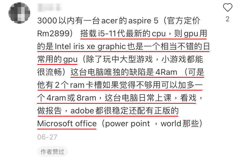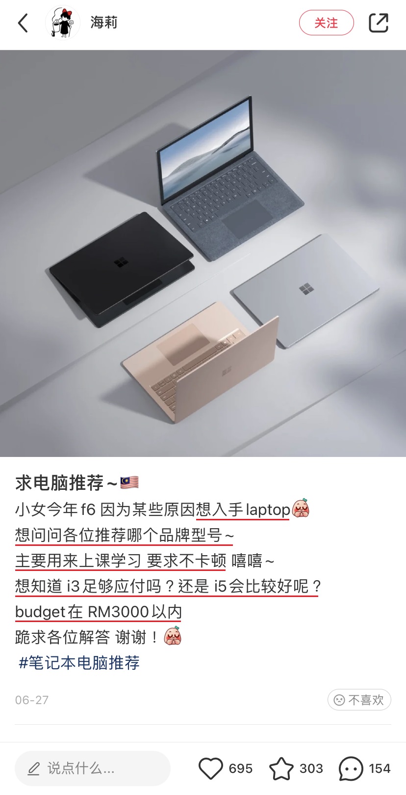 一位就读 Form 6 的大马女生就在小红书发文求推荐,RM3000以内且适合学生使用的笔电有哪些?经过小编整理后,一共从评论区列出了8款性价比高的笔电,现在就来看看吧!