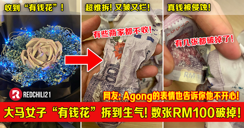 大马女子“有钱花”拆到生气「数张RM100破掉」:看着这些钱又皱又烂都不开心!