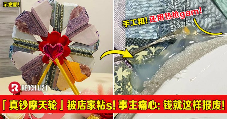 然而不仅是“有钱花”容易踩雷,这名大马女子就因为“现金摩天轮”而深受其害!一张一张的真钞,店家竟然是用热抢粘上去的,事主看着自己的钱却拆不下来,无奈不知从何下手…..