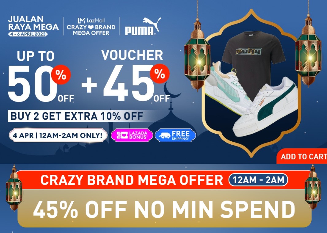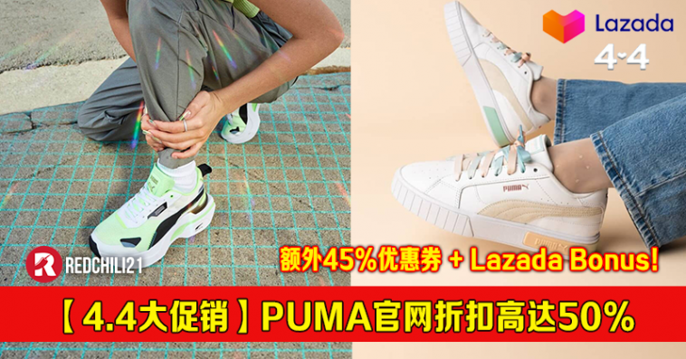 著名运动品牌 PUMA 将在 Lazada 购物平台的官方店铺举办4.4大促销,商品折扣高达50%,满2件再扣额外10%!最后再加上Lazada Bonus,真的太值得啦~